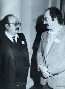 Manuel Vázquez Montalbán (izquierda) y Juan Madrid, en Reims en 1981. Fuente: El País.